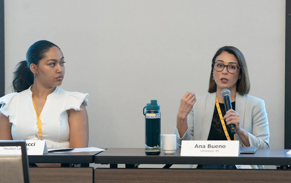 The session, moderated by Elena Bruess, an environment reporter for the Houston Landing, brought together voices from both English and Spanish-language media. Panelists included Ana Bueno of Univision 45, Alejandra Martinez of the Texas Tribune, and Sydney Fucci, director of marketing and communications at the Houston Landing.