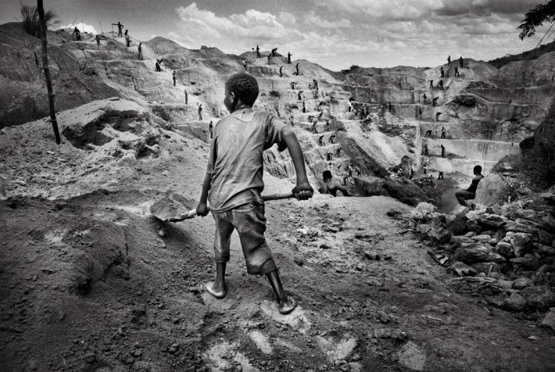 Photo 1 (right): A child is put to work at a militia-run mine in Watsa. Marcus' body of work of the Congo spans 13 years. This image, made in 2004, represents his earlier black-and-white images of the conflict mineral trade.