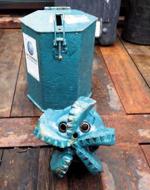 | Drill bits with synthetic diamond tips like this one are often so expensive that oil and gas companies lease them for jobs, rather that buy them outright. This particular bit helped bore a hole nearly two miles long. Photo by Adam Hinterthuer, IJNR |
