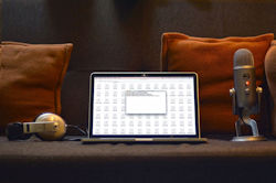 For recording at home, find a quiet corner where you can set up your computer and microphone (and interface, if you have one). Ideally, you’ve set up your microphone with a wall in front of you and your computer/podcast setup. This helps control the sound.