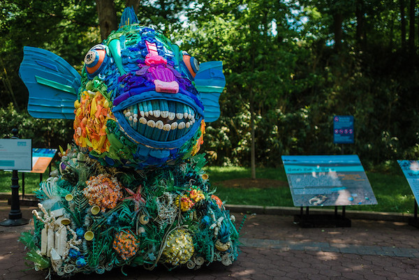 | A sculpture made entirely of plastic debris collected from beaches. Volunteers with the Smithsonian's National Zoo’s 2016 Washed Ashore Project processed an estimated 18 tons of garbage collected from more than 300 miles of coastline to create 68 sculptures of marine animals. Photo: Adam Mason, Smithsonian's National Zoo, via Flickr Creative Commons (CC BY-NC-ND 2.0). |