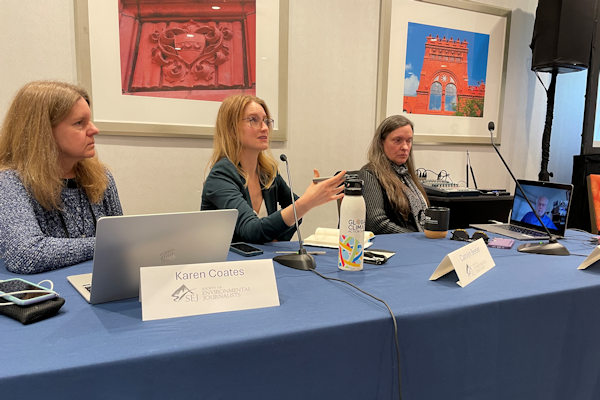 Speakers at an April 5 panel on “Care and Community As a Climate Solution” at the Society of Environmental Journalists annual conference spoke to the repercussions of devoting your life’s work to covering climate change — everything from dealing with online hate to spending hours at a time reporting on the horrible effects of a worsening environment.