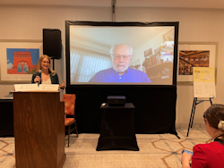 | Beeler shares her experience reporting on the environmental impacts of the Ukraine war, with virtual participation from Tareq Abu Hamed on the conflict in the Middle East. Photo: Anna Barnes. |