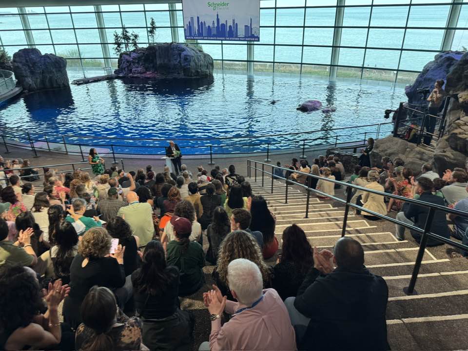 After the SEJ co-chairs greeted us, we (almost) heard from a number of University of Illinois Chicago speakers. Unfortunately, the amphitheater’s acoustics were designed for whale echolocation.
