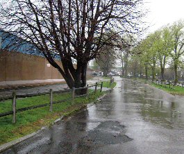 | Documerica photographer Michael Philip Manheim shot a 727 airliner flying low over homes on East Boston’s Neptune Road in May 1973 as it approached Logan International Airport. Photo by Michael Philip Manheim, EPA-Documerica / NARA. | Michael Philip Manheim, accompanied by a reporter from NPR’s Living on Earth, returned to Neptune Road in 2010 to shoot the same view from the same spot and same direction as his 1973 picture. Photo: © Michael Philip Manheim. |