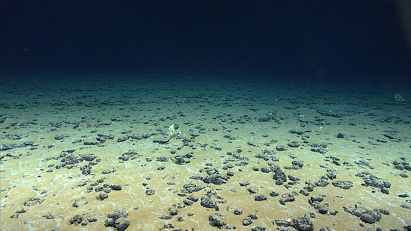 | Phosphorite nodules on the ocean floor, seen during an exploration dive to search for signs of disturbance near an area subject to experimental deep-sea mining technologies. Photo: National Oceanic and Atmospheric Administration. |