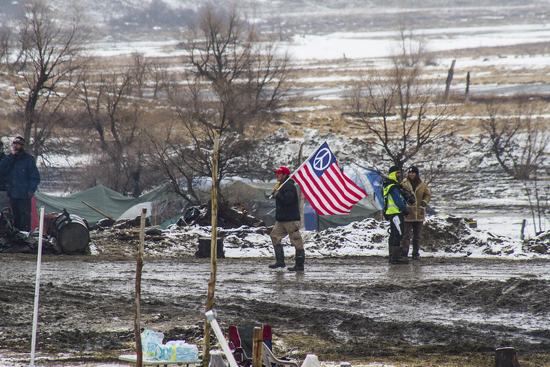 | A scene from the closing of the central protest site over the Dakota Access oil pipeline at Standing Rock, North Dakota, in February 2017. Photo: Dark Sevier via Flickr Creative Commons (CC BY-NC 2.0) |